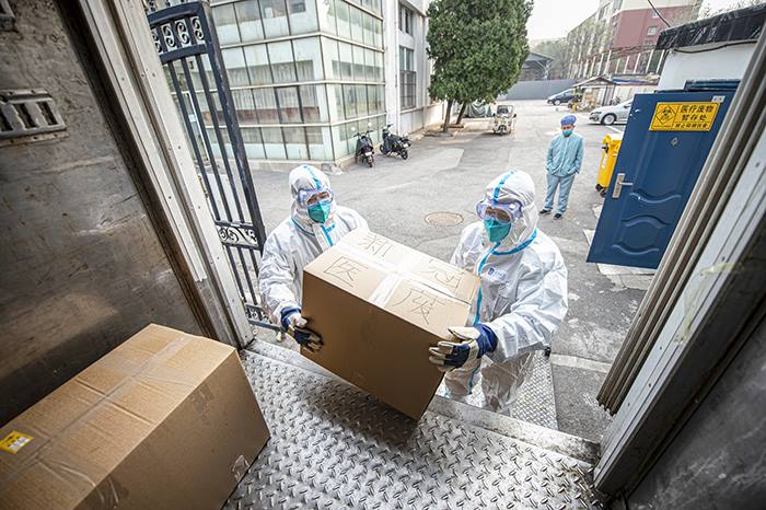 涉疫医疗废弃物既要有专人收集,也要有专人清运。范吉庆收集的医疗废弃物,最终是由火狐电竞集团所属固废物流公司医废中心运送至专门设施处置。