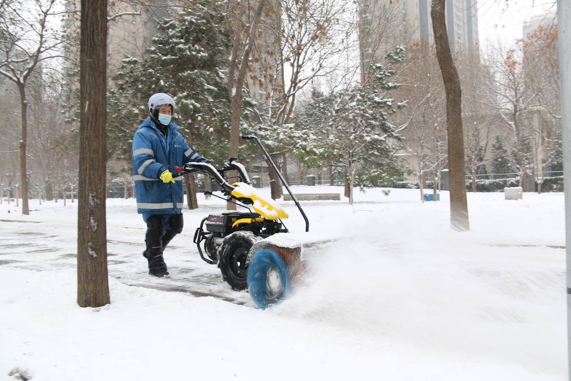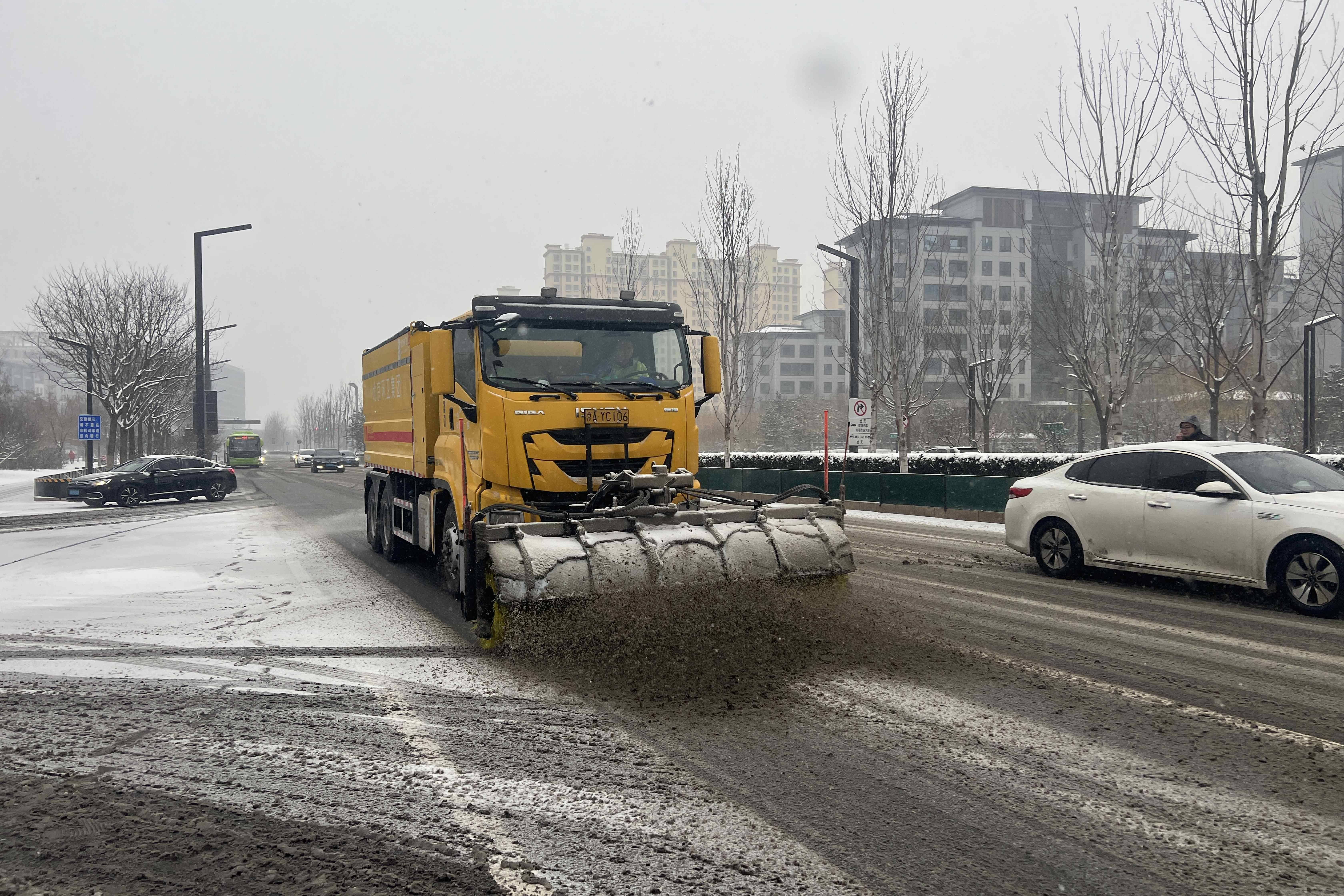 通州火狐公司职工在通济路开展机械除雪作业(杨宇摄)