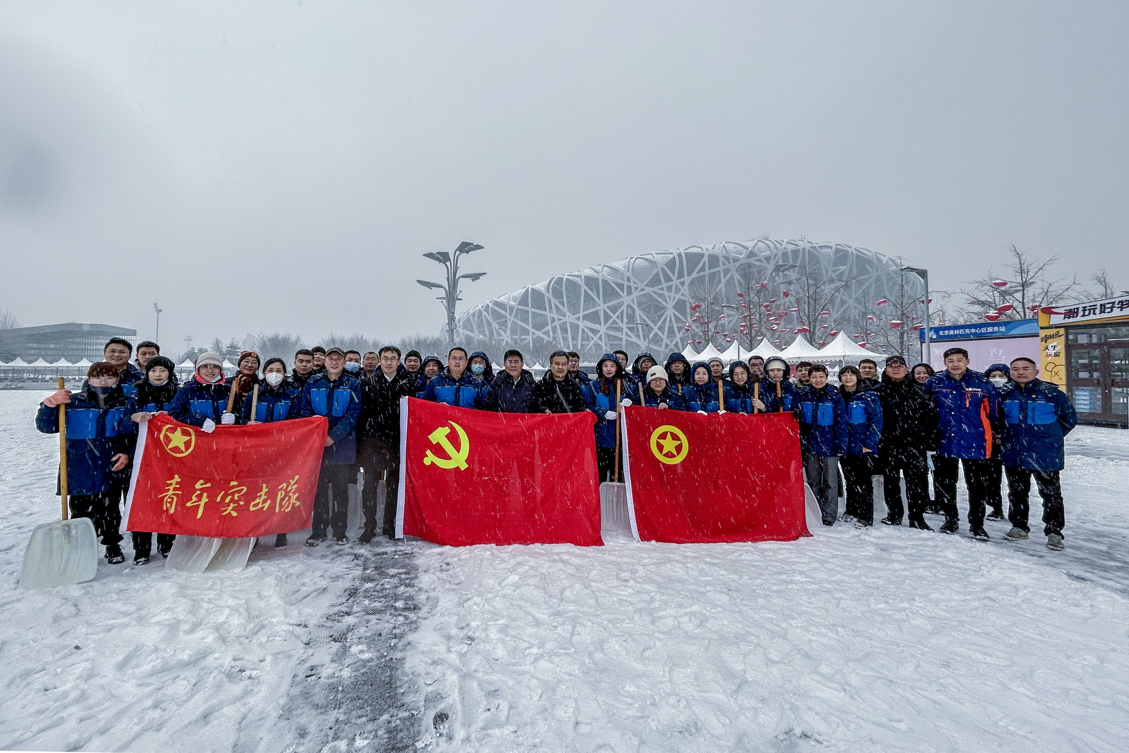 集团总部党员突击队、青年突击队在奥林匹克园区除雪(工人日报吴凡摄)