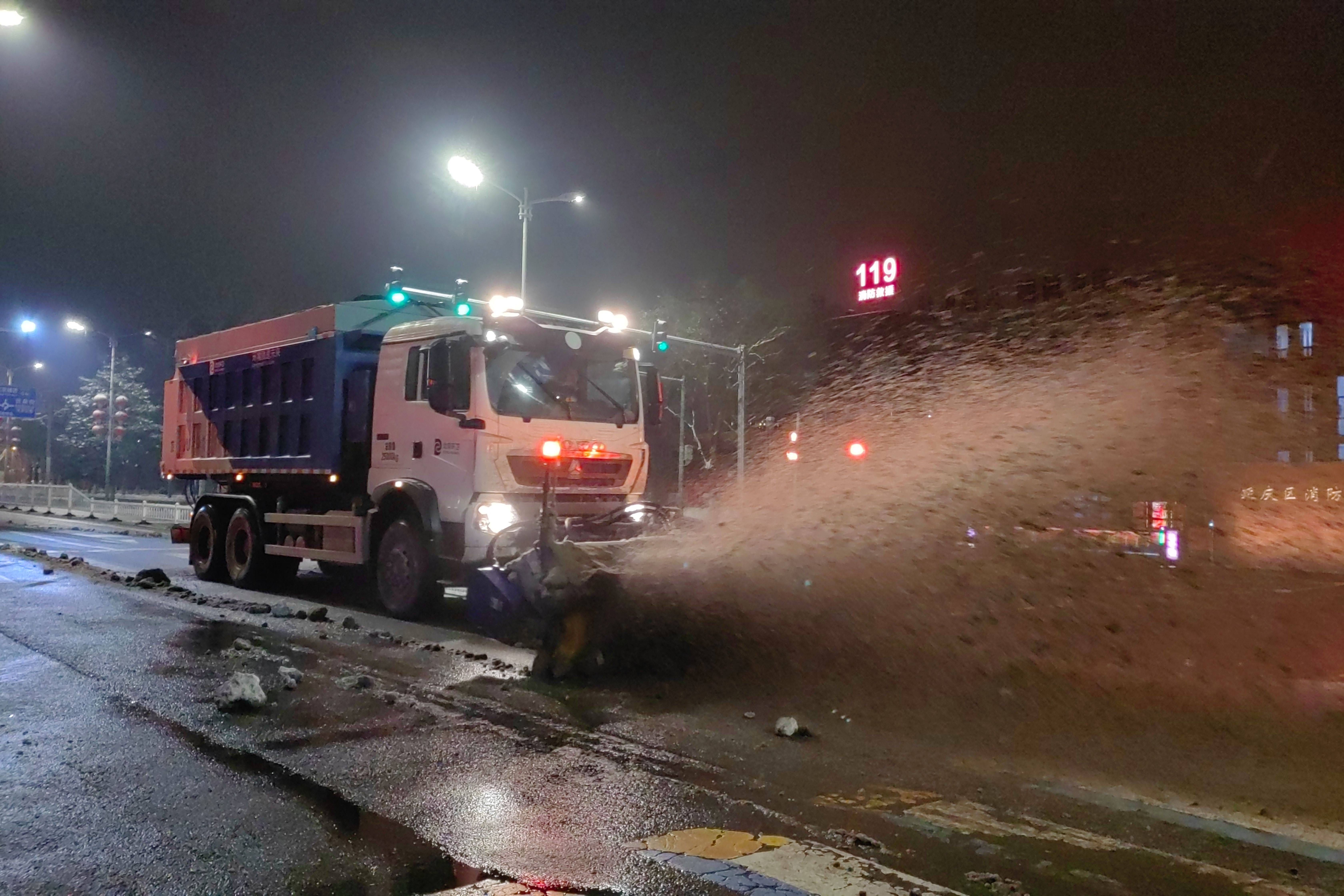集团还专门派出一支由22名职工、12辆大型作业车组成的队伍,支援延庆城区的扫雪铲冰工作,突击队员们与延庆区环卫部门密切配合,24小时不间断工作,顺利完成妫水街和东外大街两处核心主干道保障工作。