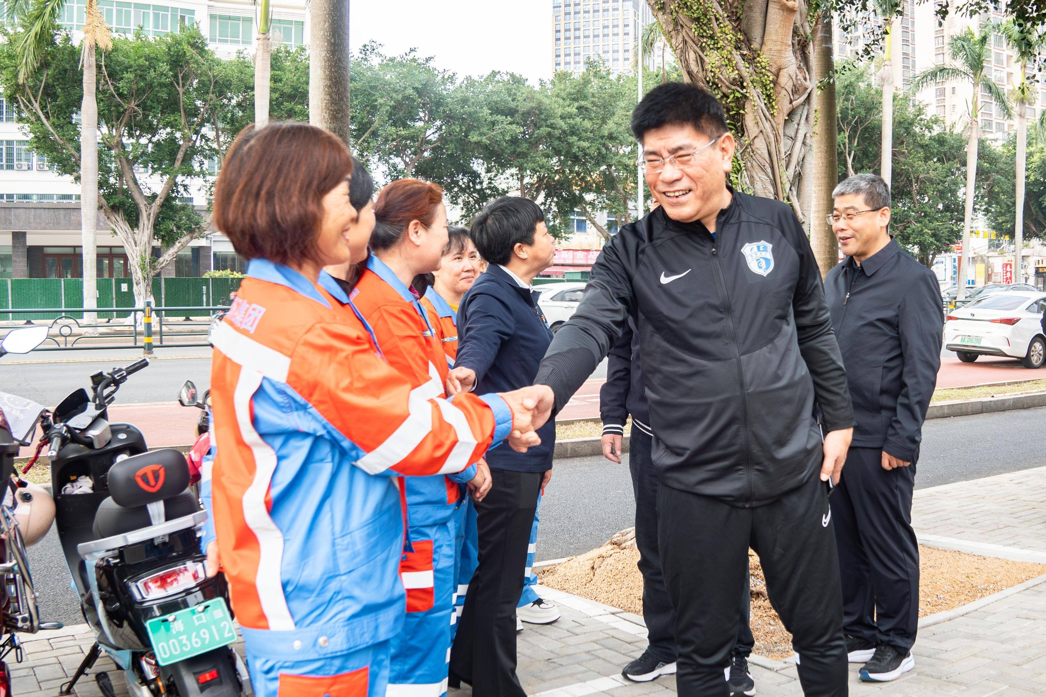 12月17日,高踪阳同志一行深入作业一线开展“心系一线 千里送暖”慰问活动,向长期奋战一线的环卫职工送上慰问品,对海南分公司广大干部职工的辛勤付出和坚守奉献表示衷心感谢,并提前送上节日祝福,叮嘱大家注意劳逸结合,让一线职工深切感受到“火狐”大家庭的温暖。