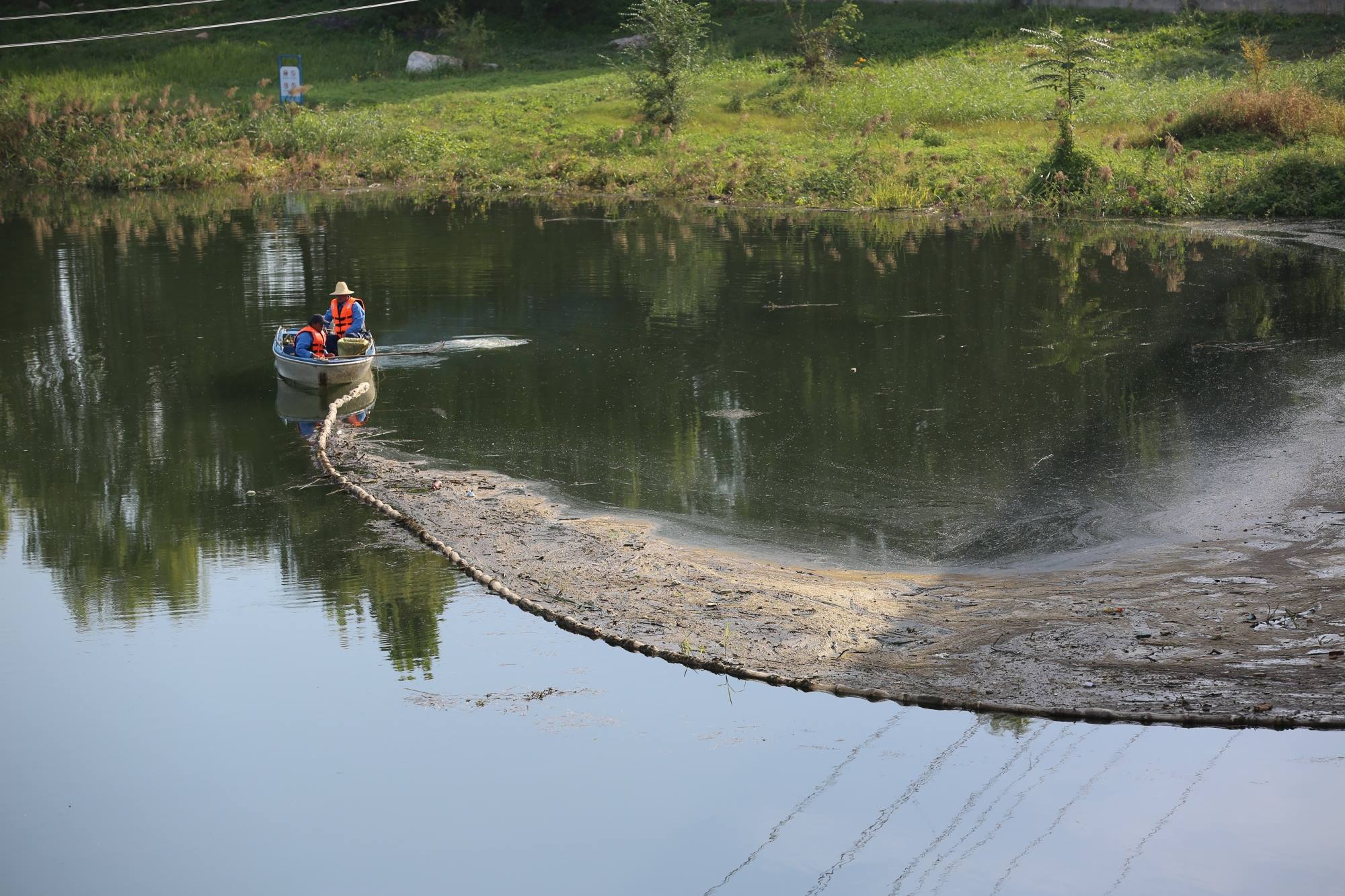 为守护好水域环境,火狐电竞集团平谷公司精心打磨作业工艺,结合泃河、洳河水域面积大,两岸芦苇丛生等特点,总结实践经验,改进打捞工艺,创新采用双层围网水面清漂工艺,通过冲锋舟与双层拦截网组合方式,高效地将水面上大小不一的各类漂浮物“一网打尽”。